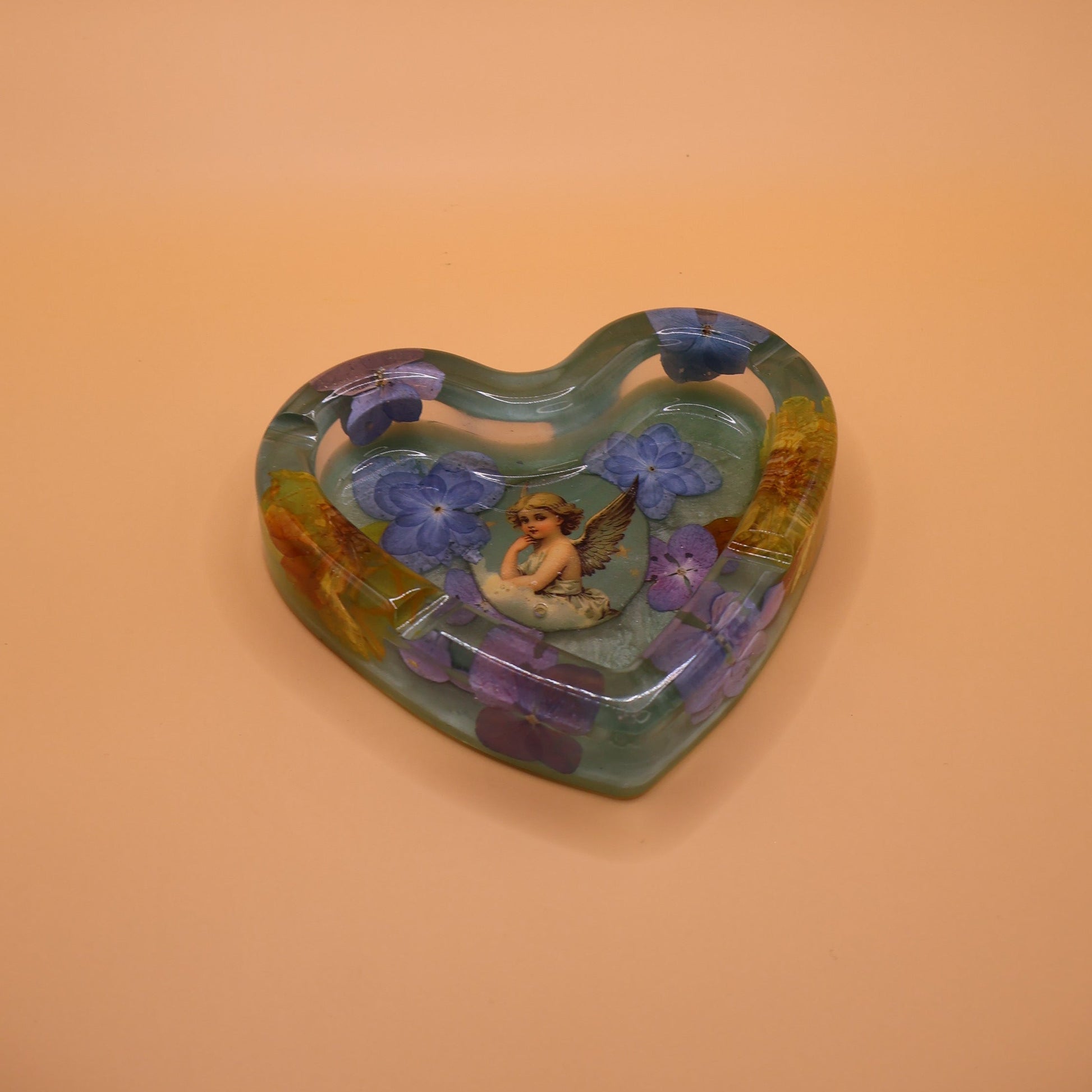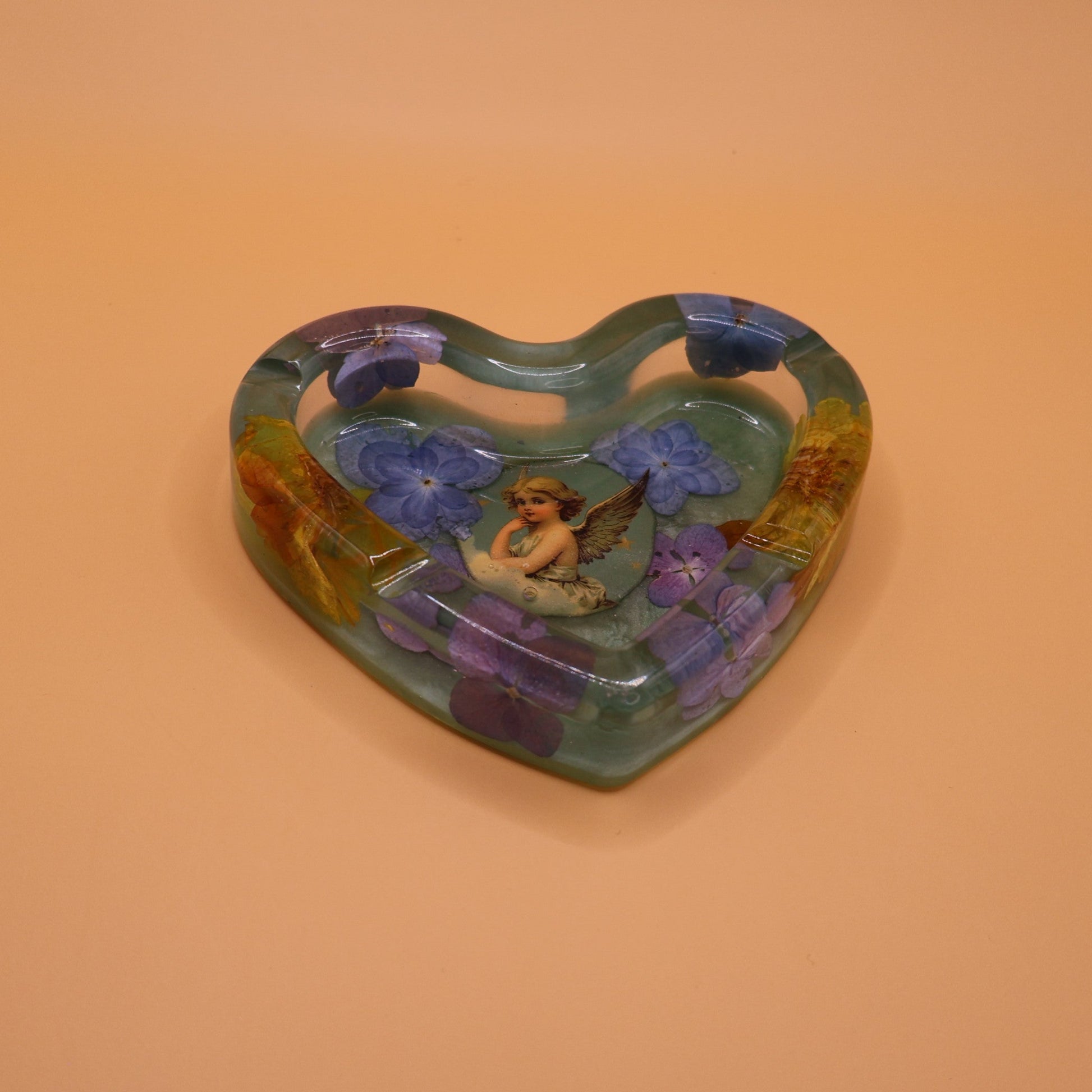 Whimsy and serenity blend in this handcrafted heart-shaped resin ashtray.