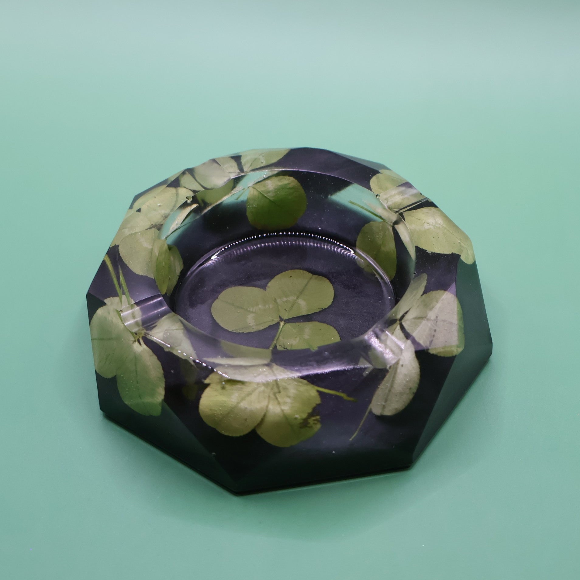 Handmade with a sleek black resin base and real green leaves, this ashtray brings a natural, elegant touch to your space.