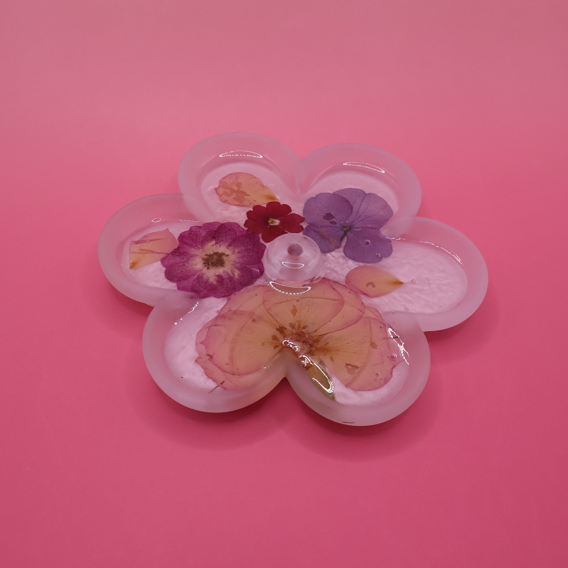 Create a serene atmosphere with this handcrafted white resin incense holder, adorned with soft pink-toned flowers for a gentle, romantic touch. Designed to bring beauty and calm to your rituals, it’s the perfect blend of elegance and intention.