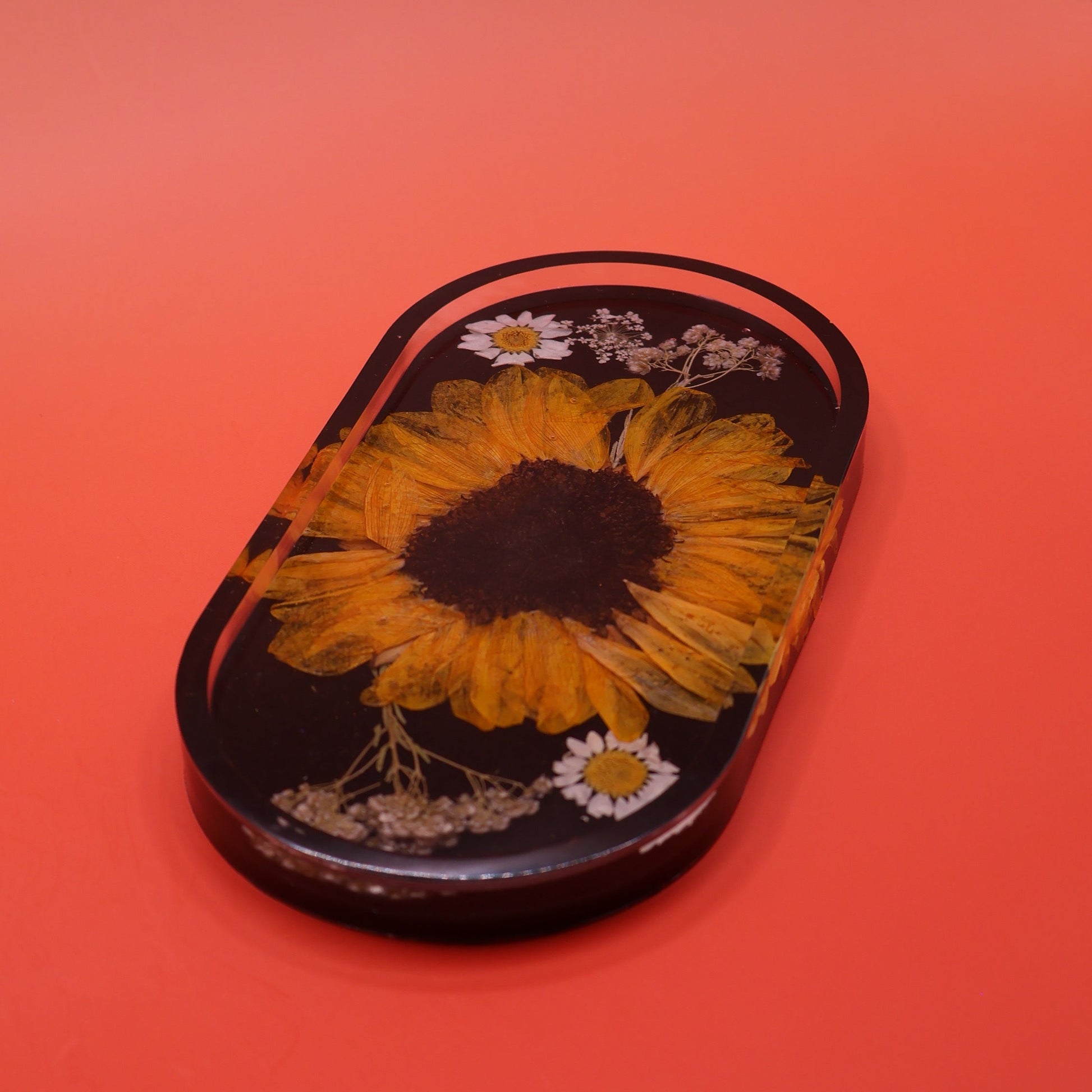 🌻⚫ Bold elegance meets rustic charm in this handcrafted resin tray.