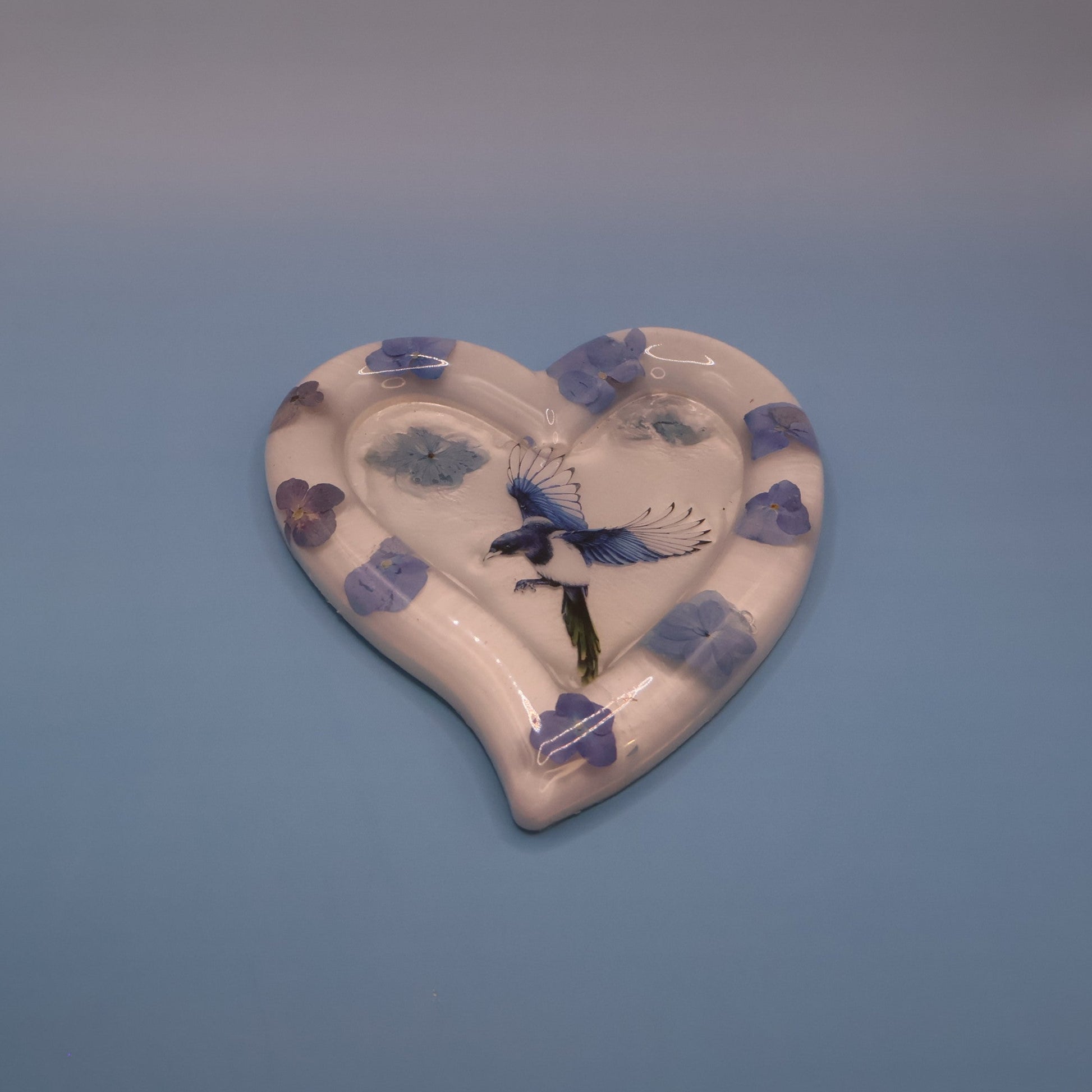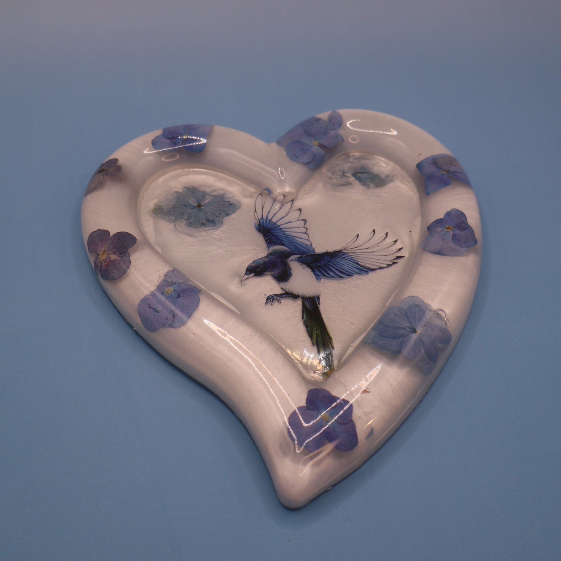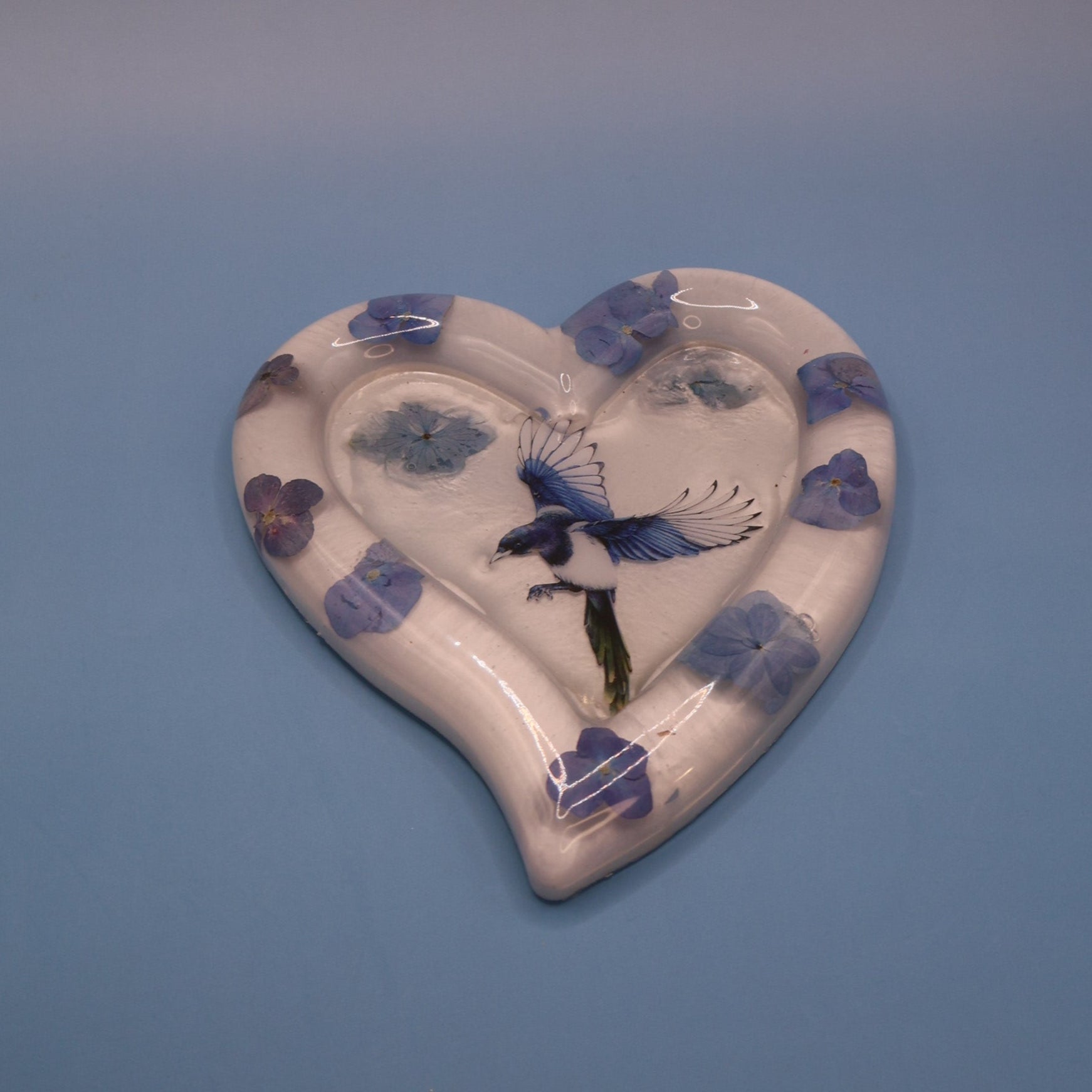 🌸 Real dried blue florals & bird motif | White resin base | Handmade & unique