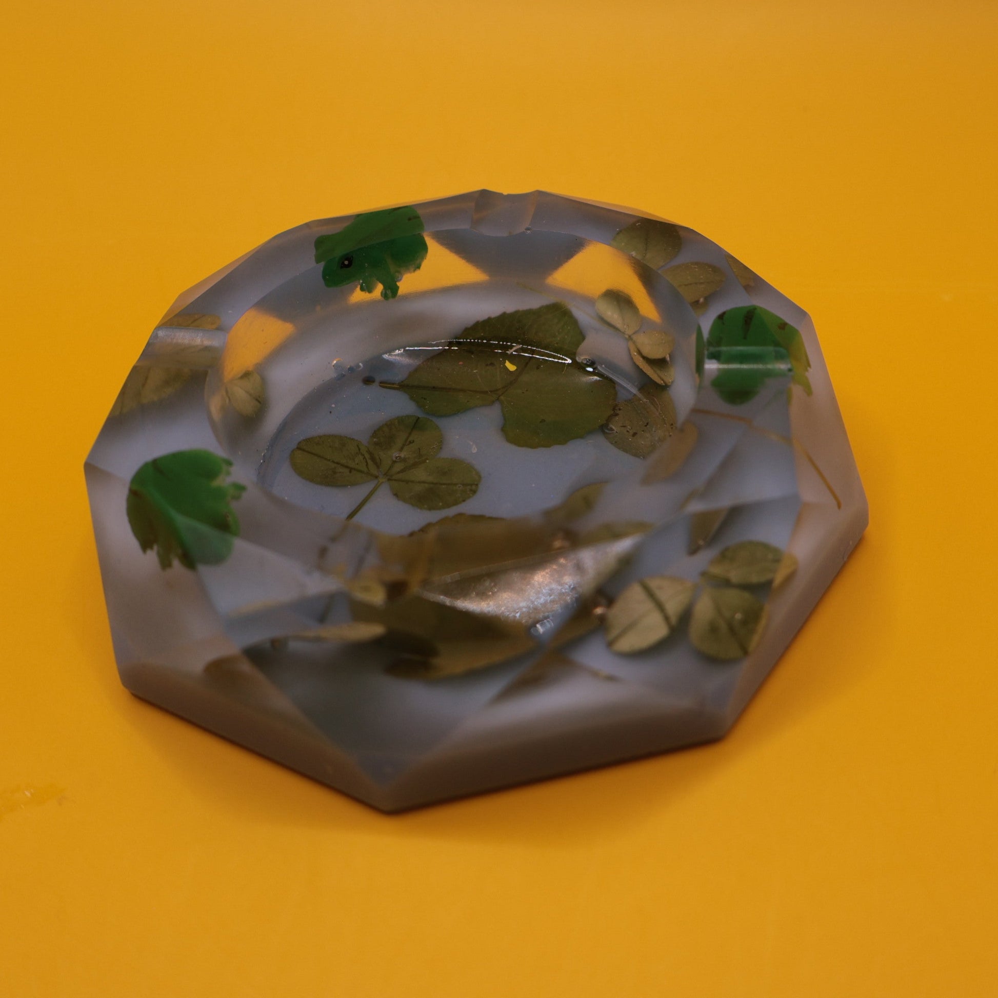 Like a tiny ecosystem captured in a circle, this round ashtray features a deep blue base that feels like water, layered with green plants and small frogs that bring the whole scene to life. It’s playful, imaginative, and almost story-like, as if you’re looking into a miniature lake with its own quiet world inside.