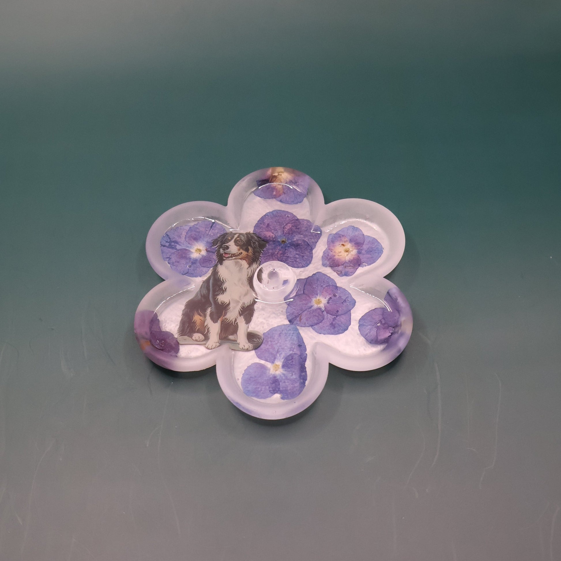 🐶 Real dried florals & dog motif | Smooth white resin base | Handmade & one of a kind