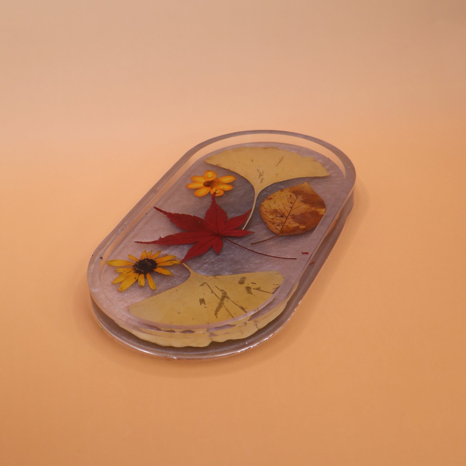 Moody, cozy, and full of seasonal warmth, this tray features a soft gray base layered with autumn florals in rich, earthy tones. It feels like a quiet fall afternoon, where warm colors meet cool skies, creating a perfectly balanced and comforting piece.